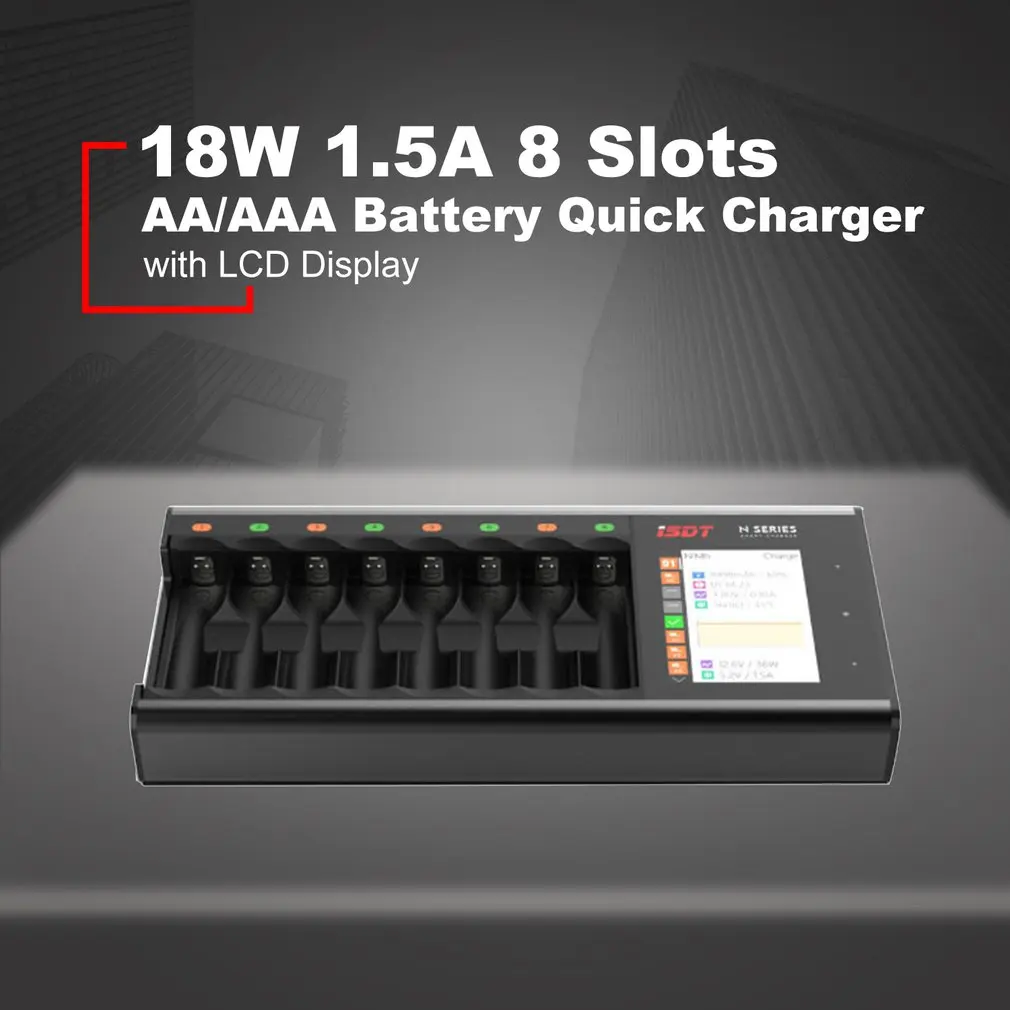 Related Product for ISDT N8 18W 1.5A 8 Slots AA/AAA Battery Quick Charger with LCD Display